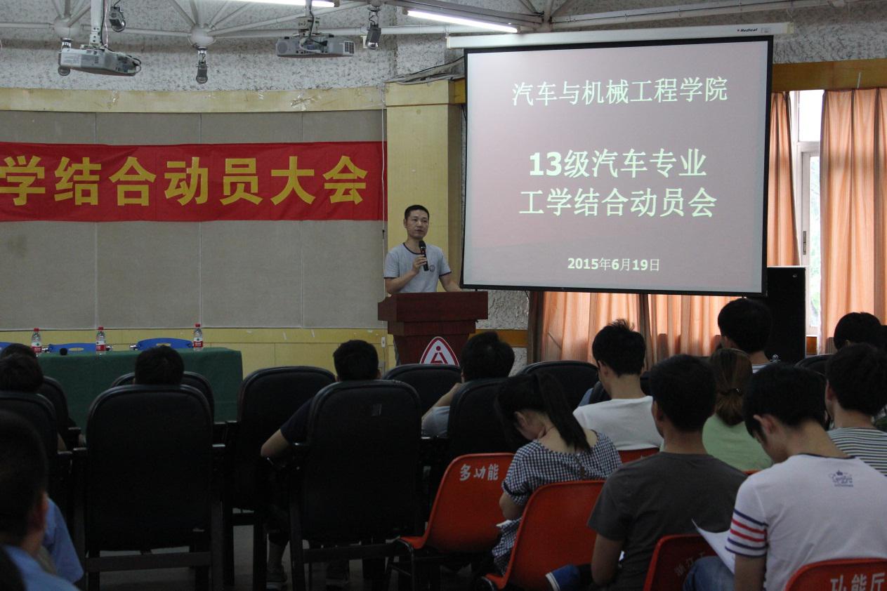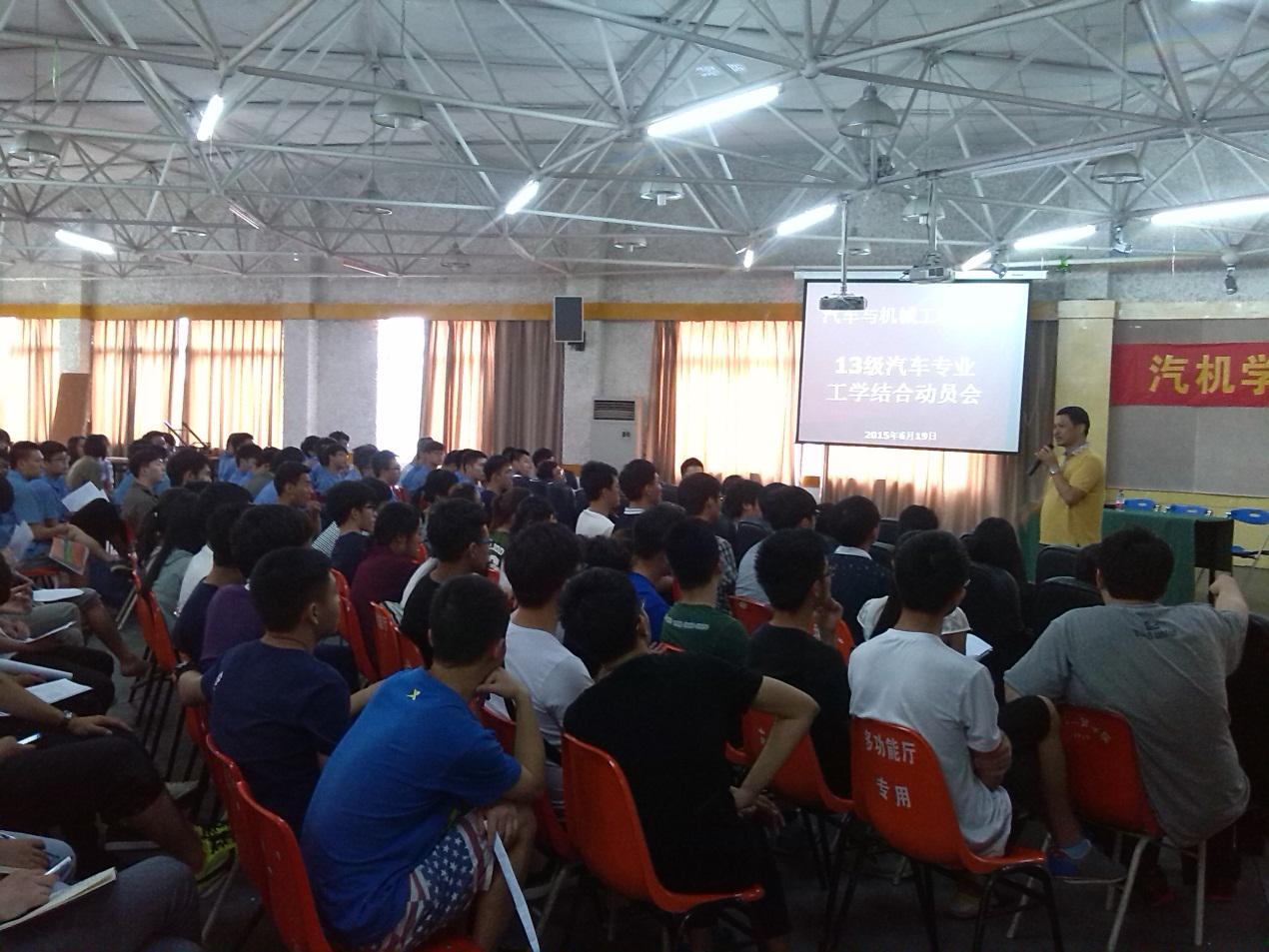 2015年6月19日12:30,汽机学院在学院多功能厅召开了13级汽车类专业员工“工学结合”动员大会。13级汽车专业全体员工及班主任、汽机学院书记、汽车专业主任、专业教师等参加了本次动员大会。会议由汽车专业张余老师主持。