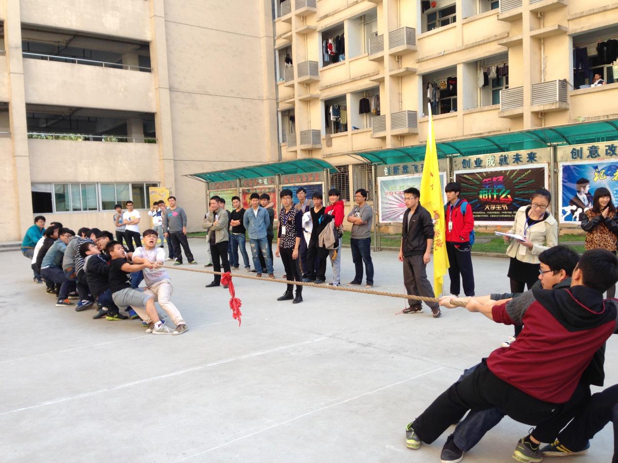 11月13日中午拔河赛初赛在学子广场举行。当裁判员吹响哨子的那一刻,同学们用力的拉着绳子,努力的让绳子中心更靠近自己这边。他们的努力未尝不是为自己的团队付出,为自己的梦想而努力进取。啦啦队的同学们也大声为自己的队友加油,那嘹亮的助威回荡在校园。经过激烈角逐,六个班级进入半决赛。11月21、22日。拔河赛的半决赛和决赛在学子广场如期举行,经过激烈比拼。最后,产生了本届拔河比赛的前三名,他们分别是3+2汽修1301、数控1302、汽修1301。