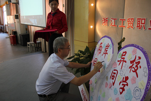 来自合作办学班的新生们对未来的学习生活充满期待,特意为此次开学典礼准备了寄语板,签上自己的名字,贴上对今后学习生活的美好祝愿。经理贺星岳、台办张振宇副主任、大华副董事长刘玉山也上台为员工们签名留寄语表达祝福。