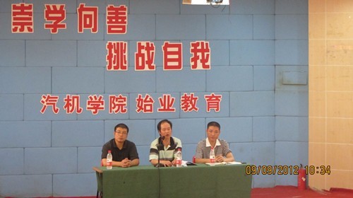 9月9日上午,汽机学院在阶梯教室召开“崇学向善 挑战自我”2012年秋季学期始业大会,出席本次会议的人员有汽机学院经理周章添老师,书记冯士活老师,经理助理戴乃昌老师,以及11级全体员工和班主任。