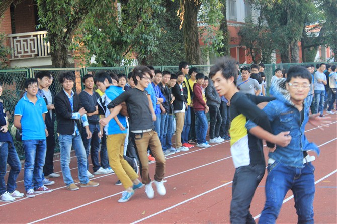 10月19日,汽机学院迎来了“2012届迎新生趣味运动会之螃蟹跑和跳绳”比赛,本场比赛在学院操场举行。经过一场场激烈角逐,螃蟹跑的最终成绩是:冠军的得主为汽修1201班,亚军为3+2数控1201班,季军为模具1201班。跳绳比赛的最终成绩是:冠军得主为汽销1201班,亚军为3+2数控1201班,季军为汽销1202班。
