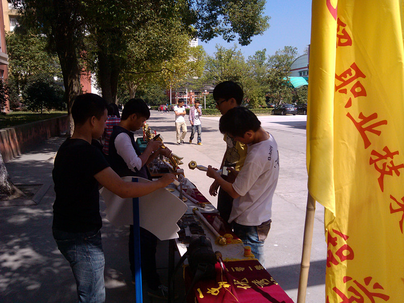 金秋十月,秋高气爽,在这个充满丰收与希望的日子里,我们汽机学院参加了关于教育成果的展会。10月16日,早上9:00至下午17:00.十足超市前一条小路上正酝酿着一场视觉盛宴。我们的展示的成果包括:专业的介绍,获奖作品展示,在校生作品,还有专业老师和员工介绍自己的专业。展示桌上琳琅满目的展品令经过的同学都情不自禁的放慢了脚步促足观赏,从展台右边往左望去,有员工工学结合作品“烟灰缸”,员工工学结合作品“门把手”,员工工学结合作品“挂钩”,车工员工实习作品,第11届百合奖奖杯,钳工员工实习作品等。展台前还挂着物品,我们汽机学院的荣誉,锦旗。展台的讲解人员和工作人员脸上无不挂着自豪的微笑。但是我们应该要明白,每一个优异的成绩的取得,背后都些付出了艰辛的劳动。这些成绩都是同学们千百次的练习换来的。世界上没有不劳而获的事情,也没有凭空掉下来的荣耀,我们应该脚踏实地,用自己的努力来争取更多更好的成绩,让每一位汽机人为他们的学院感到骄傲和自豪。