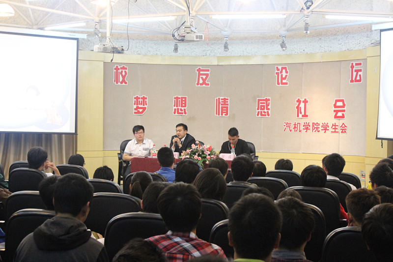 论坛在一段视频《我有一个梦想》中拉开序幕,在谈及梦想这个话题时,学长们谈到自己大学时代的梦想,自己如何在大学时代定位自我,把握梦想,不断追求。在场的同学们也踊跃的谈及了自己的梦想,和学长们做了互动交流。论坛的第二个话题是“情感”,王黎辉赠送了我们四个字“坦诚,实在”,他认为这四个字是我们对待友情和爱情的金钥匙。一首动听的歌曲《好兄弟》激荡人心,同学们积极发表了自己对兄弟这个词的理解,也向学长们提出自己人际交往方面的困惑。两位嘉宾知无不言,字字珠玑,解疑答惑,发人深省。论坛的第三个话题“社会”,在场同学问及了现在用人单位对人才的要求,以及在大学应该如何做好准备等问题。学长们给我们的建议是:在大学期间要培养好“三个能力”即自学能力、社交能力、实践能力。