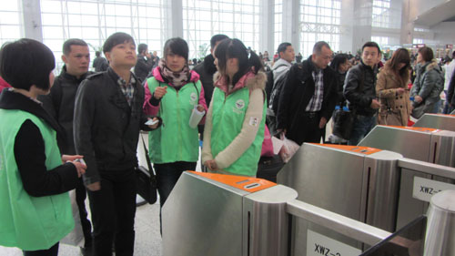 活动中,啄木鸟志愿者分组合作,有负责在安检处提醒乘客注意安检;有负责检票处秩序;有负责在咨询处提供服务;有在大厅帮助有需要的乘客提拿行李。志愿者的热情感染了来来往往的乘客,使他们真正体会到“雷锋无需仰望 就在你我身旁”。