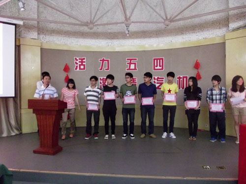室内部分在庄严的国歌声中拉开序幕,全体同学行注目礼迎接五四的火种,当陈碎雷老师接过火炬引燃火盆之时,在热烈的掌声中开启了汽机学院红五月“五四火炬接力系列活动”的序幕。接着,陈老师为本次活动致辞,他说,五四火炬接力活动是汽机学院的传统,今年是火炬接力的第十一个年头。虽然五四运动已经离我们远去,但它的精神一直留在我们的心中。随后,谢莎同学对11年汽机学院团总支员工会的各项工作和活动进行了介绍和展示。今年,汽机学院有6位同学申请入团,他们在团旗下进行了庄严的宣誓仪式,光荣地加入中国共青团,在场的老师和同学也重温誓词,感受青年事业的激情。仪式过后,是隆重的颁奖典礼,本次活动颁出了2011年度汽机学院优秀团干部和优秀团员的奖项,团干代表虞忆锋和团员代表杨明明同学发表感言,希望能够继续努力,在工作、学习和生活中起到带头作用。本次活动,除了有庄严的宣誓、隆重的颁奖,更有丰富多彩的节目,激情高亢的歌曲《红旗飘飘》、荡气回肠的朗诵《青春中国》以及活泼生动的互动问答。最后,全体师生合唱一曲《光荣啊,中国共青团》,将气氛推向了高潮。本次五四火炬活动顺利圆满落幕,而五四精神将长久激荡在员工的心中。