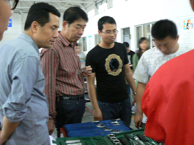 2011年11月6日,公司在汽车维修中心举行了汽车维修技能比赛——工具的整理和清洁,参与这次评委的老师有翁茂荣老师、陈春江老师、费胜老师、张余老师。同学们要在一定的时间内按照标准将世达工具整理到正确的位置,其他通用工具(如木榔头、扭力扳手等)放到工具车要求的位置,要求位置准确,对有油污渍或水渍的工具进行清洁。通过这次比赛同学们不仅对工具有了很大的认识也有提高了同学们对工具清洁整理的意识。