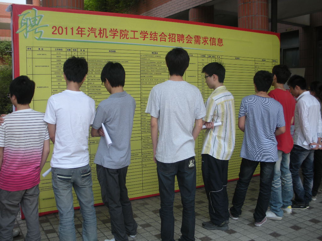 为进一步做好今年秋季工学结合准备工作,2011年5月28日,由汽机学院主办的“汽机学院09级员工工学结合招聘会”在一号楼隆重举行。此次无论从招聘企业数量、规模,还是招聘领域上都胜过往年,共有大大小小30多家企业报名参加了此次招聘会,其中更不乏温州地区以外的招聘企业。参与本次招聘会的员工主要有汽机学院09级数控、机电、模具、汽车维修、汽车营销专业的全体员工。