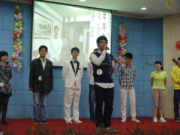 经过预赛的海选,8名选手进入本次主持人比赛的决赛。决赛主要分为自我介绍,现场模拟,复活赛和才艺展示四个环节。其中自我介绍环节中,选手们毫不怯场,使出浑身解数将各自的特长演绎出来,并富有创意,感染了评委以及现场的观众们。在才艺展示环节中,选手们尽显个人才华:优美的歌声,欢快的舞蹈,搞笑的双簧、神奇的魔术等才艺表演博得了评委及在场观众的一致好评,使全场掌声不断,气氛热烈。期间,歌友俱乐部和精舞门的表演也为本次比赛增添了不少乐趣。最终,1号选手孙嘉能夺得本次主持人大赛的桂冠。