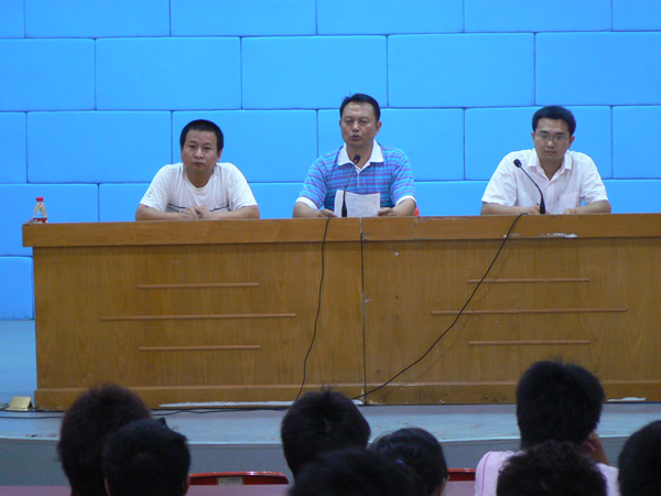 接着系书记张迪康老师发表了热情洋溢的讲话。他首先肯定了大三的生产性实训和顶岗实习成果,随后介绍了大三接下来的学习任务与今后的就业状况。针对就业,他用数字和事例分析了当前的就业形势。他指出,当前的就业形势不容乐观,同学们一定要理性就业,切勿盲目。他还要求我们06级同学从现在开始就要动手做求职简历,进入就业准备状态。最后他给我们提了几点希望,要我们学会做人,学会做事,学会感恩。