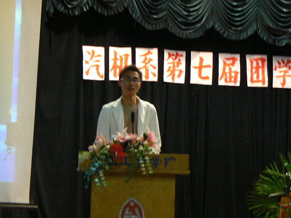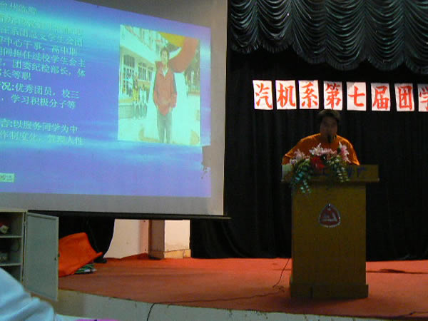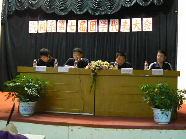 在金秋时节,我们汽机系迎来了第七届团学代表大会,出席大会的有我系书记章迪康老师,系员工党支部副书记冯士活老师,系辅导员曹大辉老师,系团总支副书记周丰同学,还有我系全体团学代表。会议有曹老师主持。大会在雄壮的国歌声中拉开了序幕。