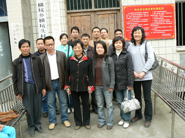 车在盘旋的山路上行驶3个多小时之后,来到了目的地----横坑头村。横坑头村,一个海拔近700米的偏远的小山村,与文成、平阳、苍南、泰顺四县相接,全村610多人。山地贫瘠,除了有一些利用竹子进行简单的手工加工户外,青壮年基本外出务工,经济比较落后。我们学院于2005年与此村结对共建,为当地提供有关信息和技术,帮助他们开发适合地方的项目,现已取得一定的成绩。