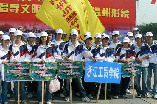 4月25日上午,温州市“倡导文明出行,提升温州形象”宣传教育活动在世纪广场正式启动,我系代表高校参加了本次活动。文明出行是公民道德素质和社会文明程度的体现,是践行“八荣八耻”的具体表现,也是建设三个温州,实现三次跨越的必然要求。做为当代老员工,更是做文明出行的宣传者与倡导者,我们应该向身边的不文明行为宣战,为迎“绿色奥运,文明温州”而努力。