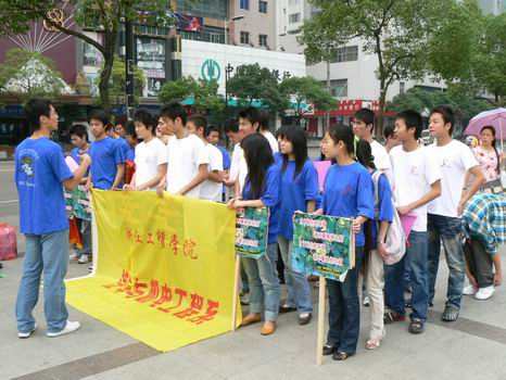 20号上午,我系30名青年志愿者八点钟出发,来到鹿城区人民路附近,开展第三次绿色啄木鸟禁痰活动。五月的温州已经有了几分的夏意,但是今天却意外的凉爽,微风轻抚,令人感觉到十分的惬意。一个好天气似乎也预兆着今天活动顺利进行。