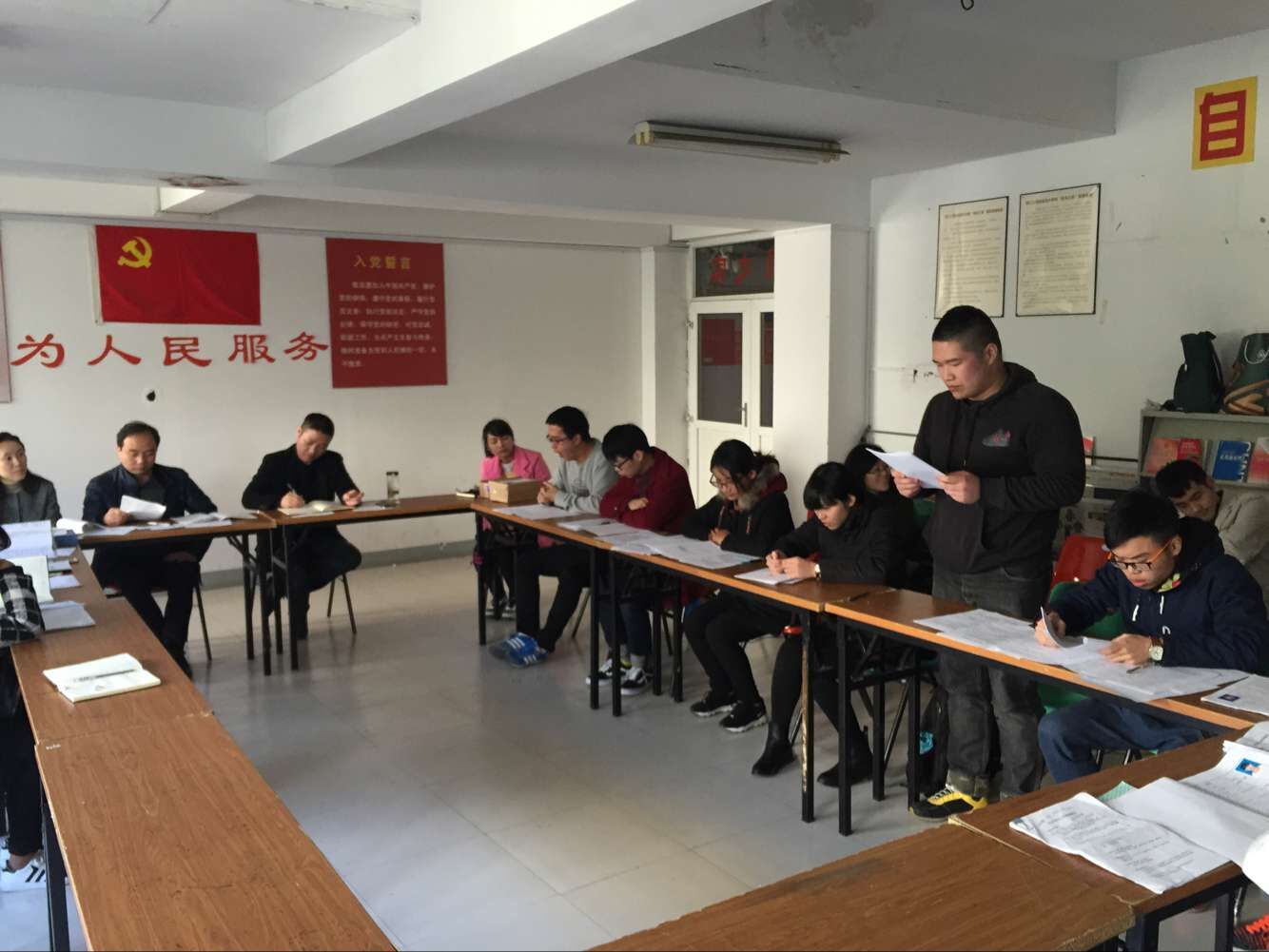 会议开始,冯书记介绍了支部大会的目的和流程。本次会议上,每位发展对象都经过以下六个环节:第一,发展对象宣读《入党志愿书》,汇报了自己的入党意向、入党动机以及对党组织的认识和自身需要改进的地方;第二,发展对象抽取题目,进行答题,题目内容是党章和时政知识竞赛;第三,发展对象的入党介绍人介绍发展对象的主要情况,并对其能否入党表明意见;第四,与会教师党员、发展对象和入党积极分子充分发表意见,对发展对象能否入党进行讨论;第四,与会有表决权的教师党员进行投票;第六,进行选票表决并宣读支部大会决议。9名发展对象完成上述6个环节后,9名发展对象起立,面向党旗,进行入党宣誓仪式。