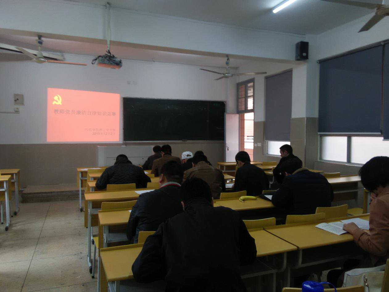 学习大会分为三个流程。首先,教师党员在1301教室自主学习和研读《廉洁自律准则》和《纪律处分条例》,学习和了解文件中的重要内容与精神。其次,冯老师讲解了《中国共产党廉洁自律准则》和《中国共产党纪律处分条例》文件出台的背景、时间和意义。在讲解中,书记重点提到了中国共产党廉洁自律准则,并对教师党员提出了要求,希望教师党员在平时工作中要坚持吃苦在前,享受在后,甘于奉献;要公私分明,清白做人,自觉维护员工和学校的根本利益,提升个人的思想道德修养,带头树立良好形象。最后,教工党支部举行了一场廉洁自律知识竞赛答题。通过知识竞赛,让教职工党员了解和铭记文件中的重要内容和精神,提升教职工党员的道德情操和理论修养。