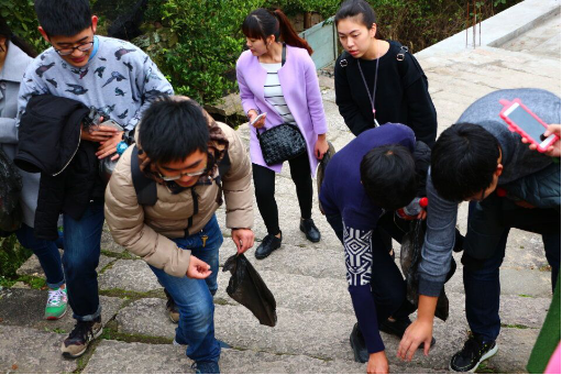 下午1时,员工们乘坐公交车到达茶山高教园区后并排着整齐的队伍步行来到大罗山下。登山前,每名入党积极分子分到一个垃圾袋,用于处置沿途的垃圾。同学们认真地清理山路上的垃圾,他们的举止也得到了路人的赞许。为了增加入党积极分子之间的认识,此次活动也增加了游戏环节。通过游戏,消除了入党积极分子之间的陌生感,使他们能更好地融入到支部这个大家庭。此次登山活动持续了3个小时,这期间同学们不怕累不怕脏,坚持走完了全程。