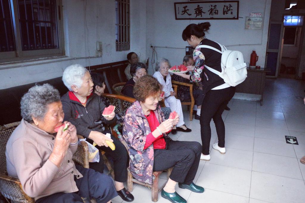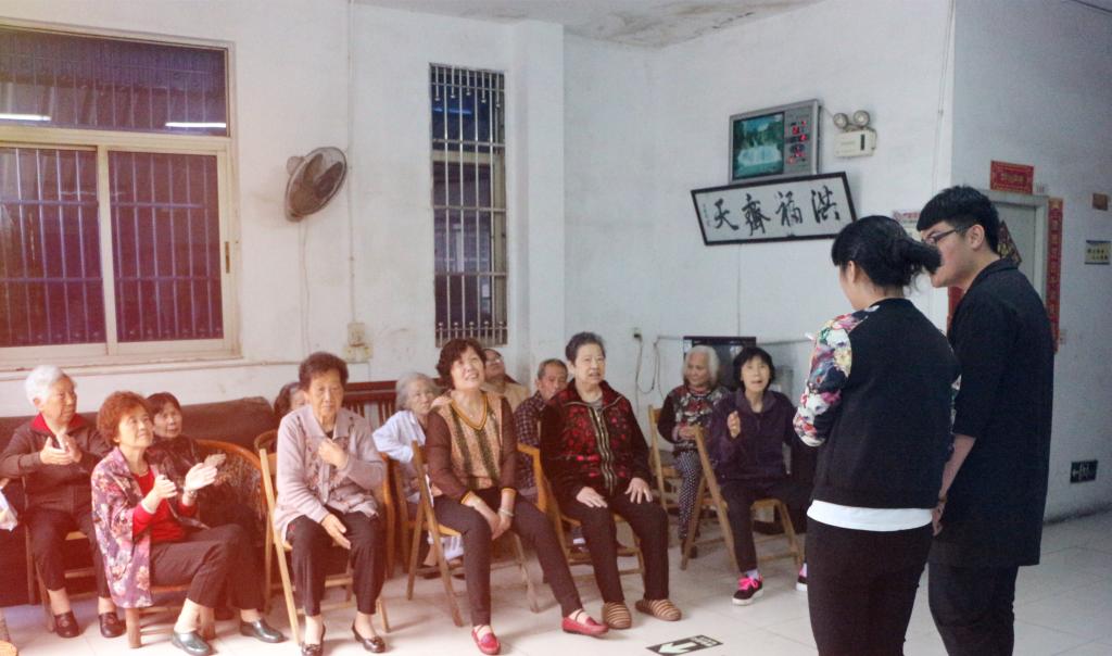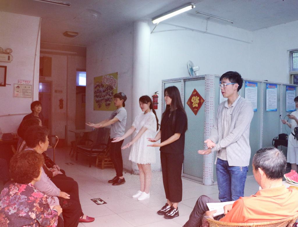 上午9时,入党积极分子排着有序的队伍来到敬老院。活动初始,入党积极分子们以3人一组的方式看望老人。员工们和老人们进行沟通交流,使他们感受到温暖。同时,向他们赠送水果、零食、指甲剪等小礼品。探望与慰问以后,入党积极分子们在敬老院大厅为老人们带来了简单的节目表演,包括歌曲、舞蹈、手语、武术等节目。在表演中,我们看到了老人们脸上的笑容,感受到他们对员工服务的满意。在活动结束之际,入党积极分子们与老人合影留念,并且在告别之际为老人们送上写有祝福的爱心贴纸。