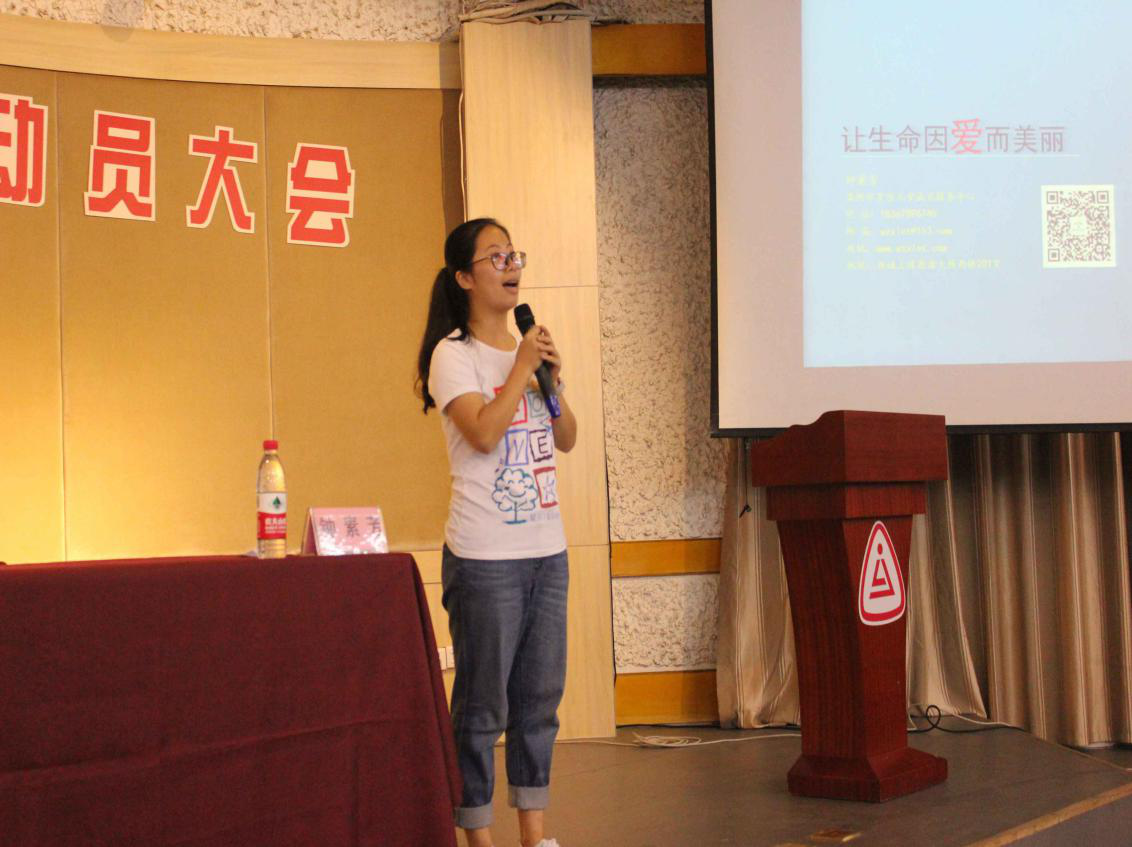 首先,我们请到了钟素芳老师带我们回顾了她志愿者工作中的点点滴滴,介绍了什么是自闭症,与志愿者们进行了互动,让我们了解了自闭症儿童在社会上的现状;接着是由绿色啄木鸟志愿队温州分部负责人之一的王赛克学长分享了前几届绿色啄木鸟志愿队的风采,而且对志愿队做了详细的介绍。最后主持人做了总结,动员大会以《星星的爸爸》作为结尾,人员有序退场。