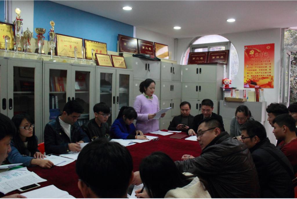 会议开始,冯士活老师介绍了此次支部大会的目的,发展员工党员的主要流程并宣布正式开始会议。发展员工党员的主要流程为个人陈述、现场问答、介绍人和与会群众的介绍、个人表态和组织投票。首先,9名发展对象通过宣读入党志愿书,向党组织汇报个人的思想、学习、生活、群众关系和党性修养等方面的表现;其次,随机抽取两道题目作答,题目内容涉及党的性质、宗旨、基本路线及十八大精神等方面;随后,入党介绍人和与会群众介绍发展对象的情况,既有优秀的部分,也有不足之处。接着,针对师生所给的建议和批评,各发展对象表明自己今后的努力方向。最后,有表决权的教师党员就是否同意发展对象加入中国共产党进行投票。经计票人和监票人的统计,9名发展对象均以全票通过的方式,成为员工预备党员。