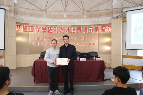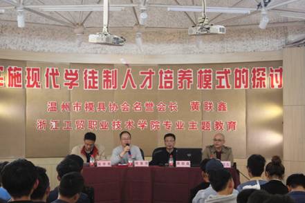 首先,郑道友副经理向在场师生介绍了专家黄联鑫的基本概况。黄会长是浙江省首席技师、温州市瓯江技能大师、温州市文泰笔业有限公司技术总监、温州市模具协会的前会长,是温州市机械行业的老前辈。黄会长入行30多年,痴心不改、不忘初心只做一件事:制造模具。他致力于研究双色笔套模具、水性笔出水器模具、新型高效能制笔热流道注塑工艺模具等,成功解决了模具中分流板与型腔板之间如何绝热的最大难题。从黄会长身上我们真正体会到了“工匠精神”。温州电视台推出《瓯越工匠》系列电视展播,讲述黄会长几十年的精益求精,为我们生产了一支支书写流利的笔的故事。