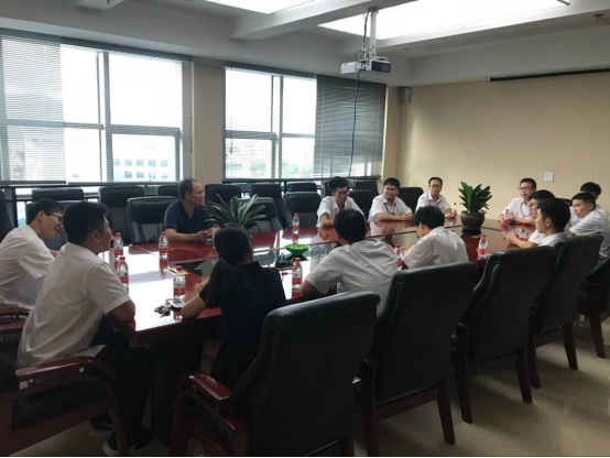 周经理一行先去查看了实习员工们的工作和生活环境,而后进行了一场座谈会。通过与实习指导老师和员工们的交谈,了解员工们过去一个月在企业的学习、工作和生活情况。在座谈会中,周经理与在场人员进行了亲切交流并对实习员工提出了五点要求:一是要时刻把安全问题放在第一位,重视生产操作安全、人身安全和财产安全;二是要认真学好专业知识,虚心向技术人员请教;三是要发扬不怕苦不放弃的精神,努力克服遇到的困难;四是要严格遵守实习单位的规定,学会为人处事,在实习中成长和锻炼;五是合理安排实习工作和学业任务,在工作之余,认真撰写毕业设计。