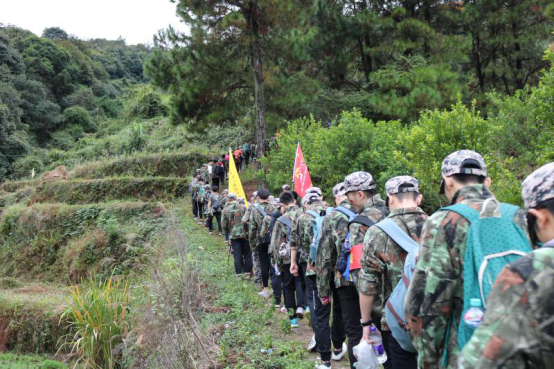 11月18日早上六点半,60名参与者穿上迷彩服,戴上红军帽,在宋良友老师和豆照锋老师的带领下启程了。8点钟,来自全市的1000名参赛者在瓯海郭溪中学集合,举行开幕式。而此次活动的终点为瓯海区郭溪街道岭头村的景德寺,它是温州和平解放谈判旧址,是我市第一批爱国主义教育基地。活动沿途经过郭景路、殿上村、黄坑村、郑山头村、吭口塘水库、天长岭古道、九龙庙、岭根村、郑山头村,最后回到郭溪中学会师,全程大约12公里,历时180分到210分不等。在活动中,汽机分院党支部的员工党员与入党积极分子以及3+2数控1602班的同学们怀揣着激情澎湃而又充满敬畏之心的心情急步行军。行军路程中,沿途的村民们自发组织为重走长征路的队员们分发代表喜庆的红鸡蛋。而一路上,汽机学子高唱团结就是力量、强军战歌等红歌,斗志昂扬地翻越了十二公里的大马路、小泥路和山坡台阶,顺利抵达了目的地景德寺,圆满完成了“青春践行十九大,重走红军长征路”活动。