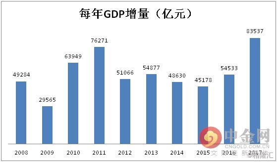 2017年中国GDP为827122亿元,增量为83537亿元,突然放大。
