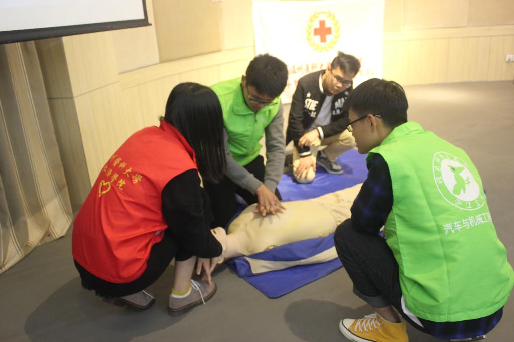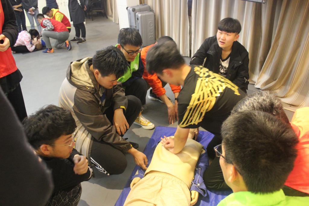 在这之后,医学院的员工志愿者们先是通过人偶为我们现场演示了心肺复苏的整个过程,并了解到心肺复苏的重要性。如果在4分钟内进行心肺复苏,约有一半人能被救活;如果在4~6分钟进行心肺复苏,约10%的人可被救活;超过10分钟复苏者,存活率几乎为零。因此掌握必要的急救知识十分重要,这关系着一条条的生命。在志愿者演示完后,现场的的观众也是参与其中,在现场志愿者的指导下,体验了心肺复苏的整个过程,学习了相关动作,提升了自己的急救能力,同时也体会到急救人员的辛苦不易,值得我们尊敬。
