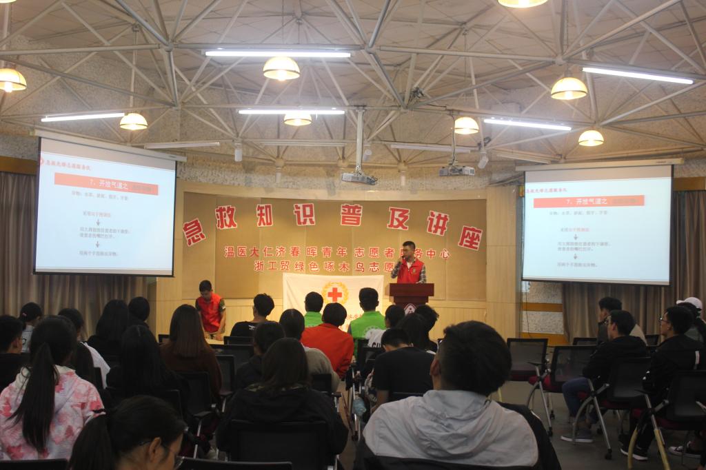当然,包扎也是急救中必不可少的一项技能,这是生命的延续。春晖志愿队的志愿者还为我们讲解了应急救护四项技术,手指压迫止血法,绷带包扎和三角巾包扎法。与绿色啄木鸟志愿队的成员进行了现场演示,并在现场指导观众。这次急救知识普及讲座让我们了解到了急救的重要性,学习到许多的急救知识,体会到急救人员的无私伟大,他们的精神值得我们去赞扬去学习!