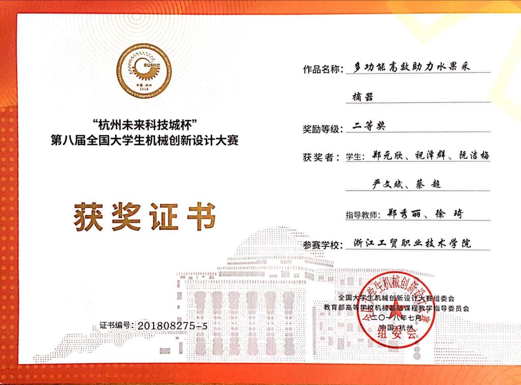 7月22日至25日,由教育部高等学校机械学科教学指导委员会主办,浙江工业大学承办的第八届全国老员工机械创新设计大赛决赛于浙江工业大学屏峰校区举行。公司汽机分院入围作品《多功能高效助力水果采摘器》(团队成员:郑元欣、祝泽群、阮洁梅、严文斌、蔡超,指导老师:郑秀丽、徐琦)荣获全国二等奖,取得公司在该项赛事中的最好成绩。