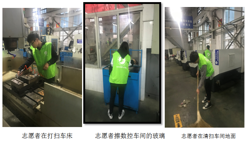 义务清洗活动一直都是我们绿色啄木鸟志愿队的品牌活动。此次活动清洗的场地是数控车间的车床和地面。在清洗前,由实训室负责老师向志愿者们简要介绍了清洗时的注意要点、清洗方式,特别是强调安全工作。作为汽机分院的一成员,志愿者们较为熟悉清洗和整理的场地,因此更懂得如何清洗。在清洗过程中,志愿者们分工有序,认真清洗,因为懂得这不仅仅是一次次清洗工作,更重要的是准备良好的考试环境。经过90分钟的努力,车间焕然一新。看着干净的车间,志愿者们体验到了志愿服务的快乐精神,更感受到了志愿者队伍的团队力量。