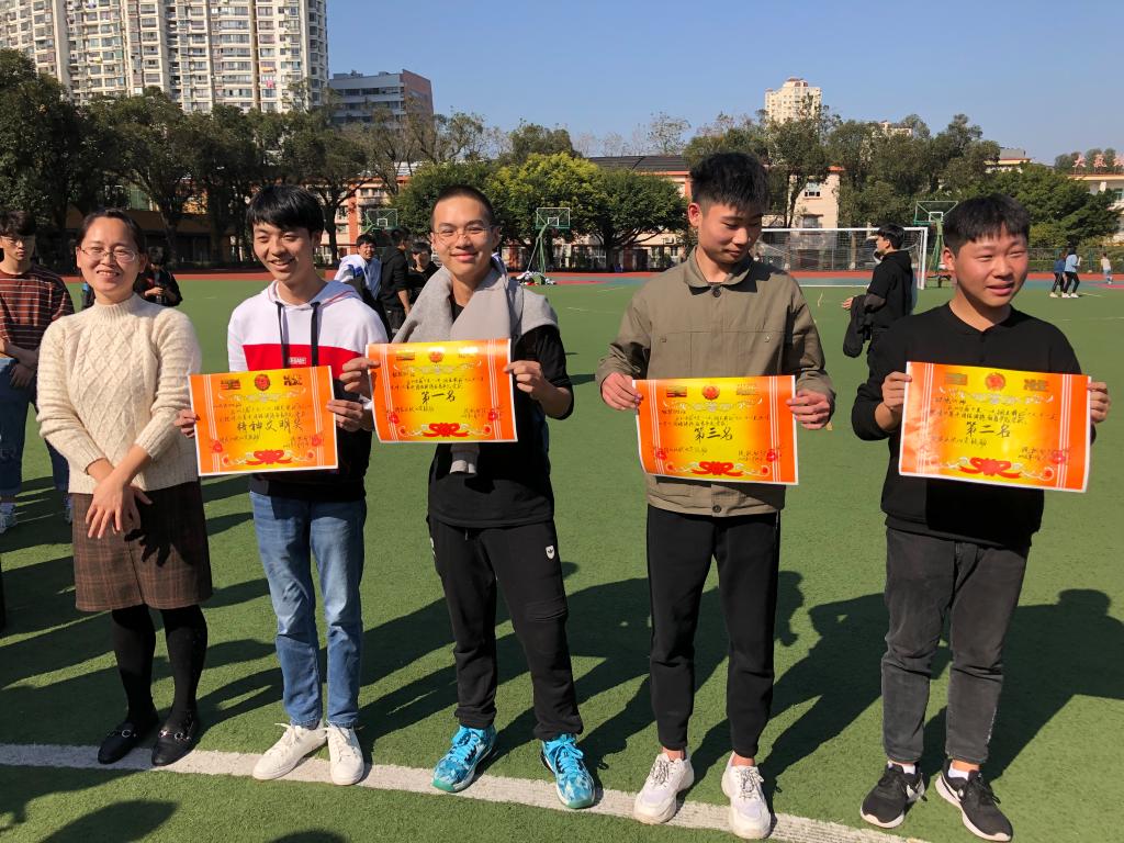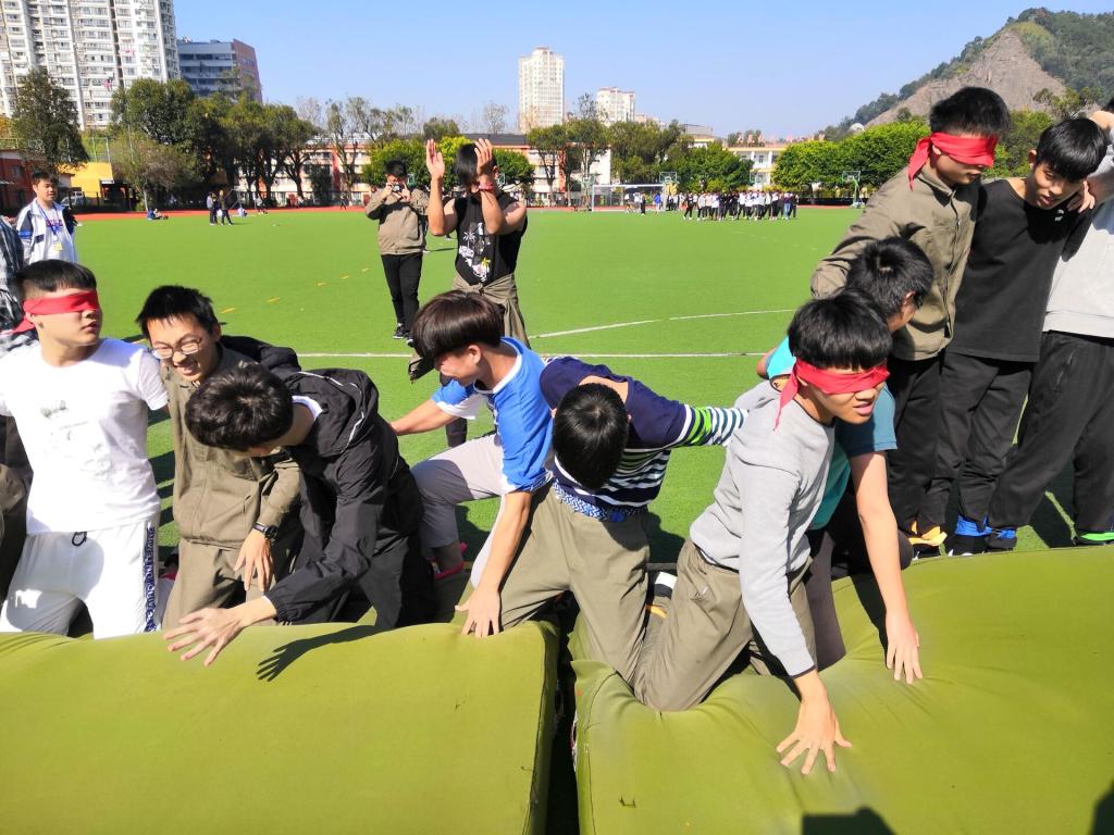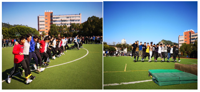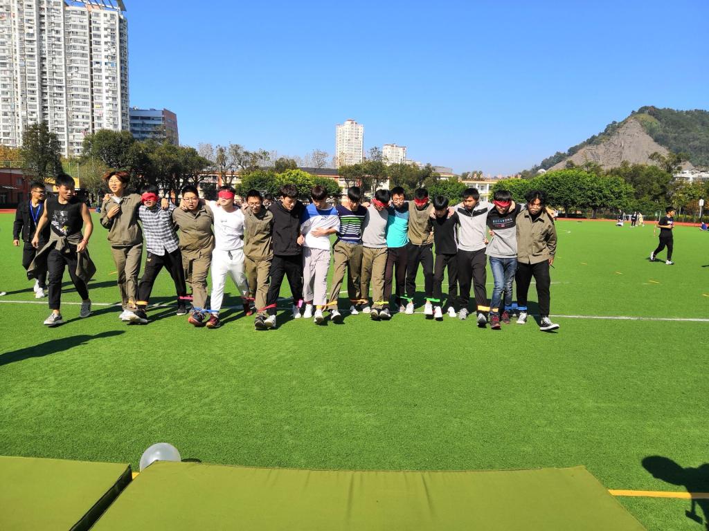 在活动策划过程中,为了增加活动的多样性和趣味性,此次“十人十一足”增添了些比赛形式:三轮赛制、十五人十六足、障碍赛以及蒙眼挑战赛等等。同时,为了保证比赛的顺利完成,体育部干事们尝试了“十人十一足”活动的各种比赛形式。另外,在比赛前期,各班级积极训练,为取得好成绩共同努力。11月27日中午,“十人十一足”开始了第一轮淘汰赛,2018级的14个班级,通过两两对决形式,确定七个名额。在赛道上,各班积极备战,蓄势待发,虽然只有短短的50m距离,但是每个班都为进入半决赛而奋勇争前。11月28日,获胜的7个班级,通过抽签形式(1个班级轮空晋级),以障碍赛赛制确定3个班级进入总决赛。在障碍赛中,同学们需合力踩破3组气球,并折返跑完成100米的距离。这轮更加需要班级同学的默契、坚持和配合。最后一日,以蒙眼形式完成“十人十一足”的决赛,此轮中,虽然每组有五人蒙眼,但这不影响队员的配合,参赛队员们默契十足、不畏困难、奔跑向前,最终控1801班、环境1801班、数控1802班分别获得了第一、二、三名的好成绩。