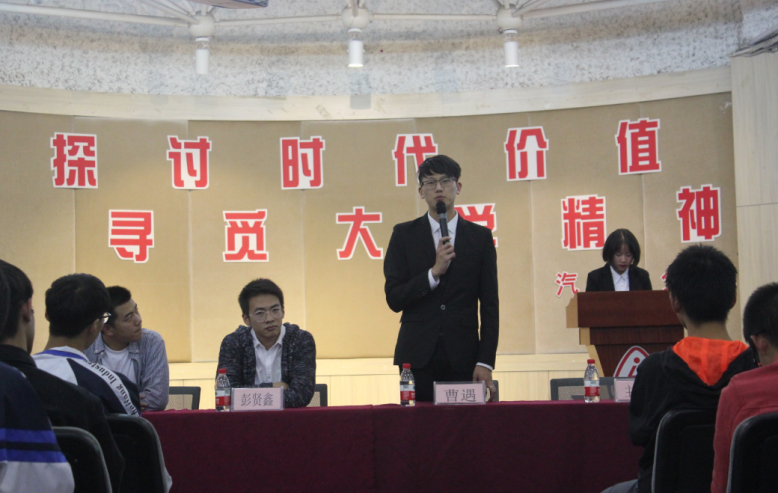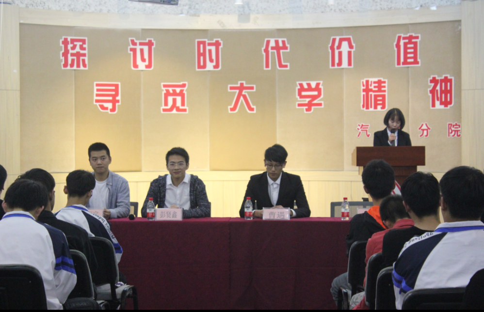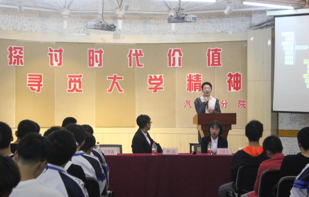 此次论坛邀请了2017届院团委广播站负责人汽修1601班曹遇、2017届院团委负责人机电1603班彭贤鑫以及2017届汽机分院副主席机电1603班王振宇,这三位学长从个人经历出发,与在场观众畅谈他们的大学经历。首先,曹遇同学以最近流行的锦鲤为引,谈到每个人都是生活中的锦鲤,我们要相信自己是幸运的,要通过各种平台锻炼自己,争做一个优秀的时代新青年,并且告诉在场的每个人要学会感恩,用一颗感恩的心对待生活。接着,彭贤鑫同学以个人的员工会经历为切入点,以故事的方式讲述个人从不得志到成功,由成功到膨胀到失败再到重新站起来,告诉在场的学弟学妹们做人做事要胜不傲,败不馁,以平常心对待工作和学习。最后王振宇同学从人际交往、员工会工作、学业问题三方面出发,以贴合实际又不失幽默的方式,与学弟学妹们分享自己的经验看法、成长得失以及人生规划。在三个同学的交流中,在场观众积极提问,学长们也认真回答问题。