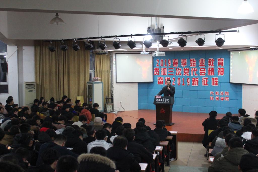 围绕“立德树人,建设中国特色高水平高职院”主题,2019年2月24日晚上,汽机分院在阶梯教室举行“贯彻三次党代会精神,奋进2019新征程”为主题的秋季始业教育。到场人员有汽机分院书记吴学亮老师,经理助理李晓星老师,辅导员周全老师、黄丹华老师、2017、2018级班主任和班级同学。