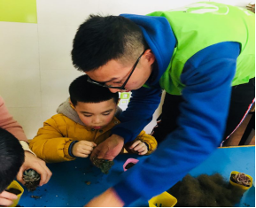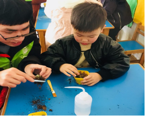 课堂上,志愿者们通过PPT呈现,给孩子们带来一堂绿色课堂。志愿者们带领孩子了解植树节的来由、意义,探讨植物的作用。孩子们各个聚精会神,聆听志愿者姐姐带来的新知识。在提问和讨论环节,孩子们高高举起小手,积极回答问题,踊跃表达自己的想法。课堂之后,进入孩子们期待的动手环节,先由志愿者向孩子们介绍并示范种植多肉的方法,孩子们认真观看操作过程,并能正确复述种植过程。在种植可爱的多肉盆栽中,志愿者们分工有序,一人负责5个小朋友,指导和帮助小朋友顺利完成多肉的种植。看着自己亲手种植的盆栽,小朋友们各个非常兴奋,并向小伙伴们、老师和志愿者们展示自己的作品。