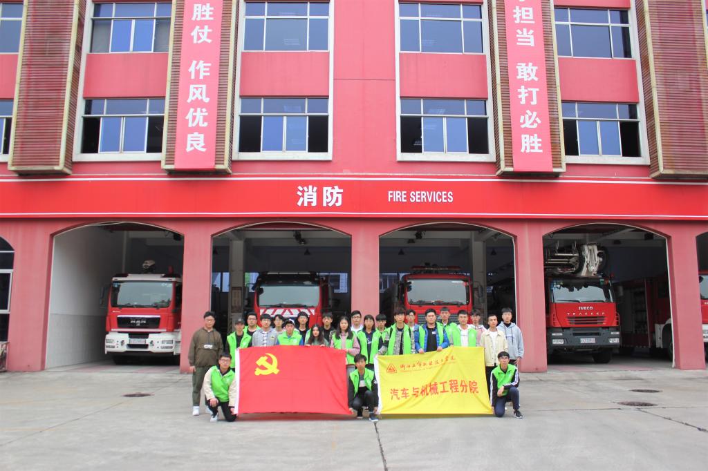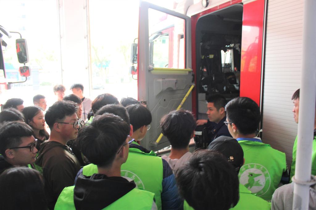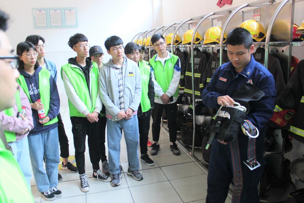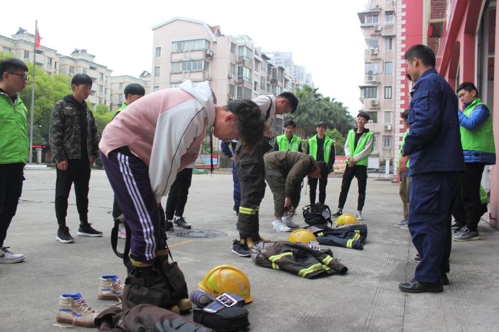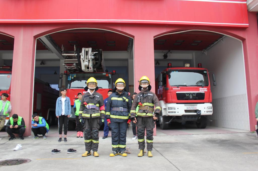 在教官的带领下,入党积极分子参观了消防局的车库,了解了车库中不同车辆的作用与使用方法。在消防车身后,摆放着一排整齐的消防员服。虽是架在衣架上,但这些陪伴消防员经历过熊熊烈火的衣服,显得格外挺拔,像一位位站着军姿的军人。随后,教官拿出三套消防服给入党积极分子试穿感受。体验完穿戴消防服,大家能体验到消防官兵们穿着厚重的装备战斗,在最危险的地方保护着人民的生活安全,是多么的辛苦,却又那么的帅气。联想到此,入党积极分子们更加钦佩消防官兵!