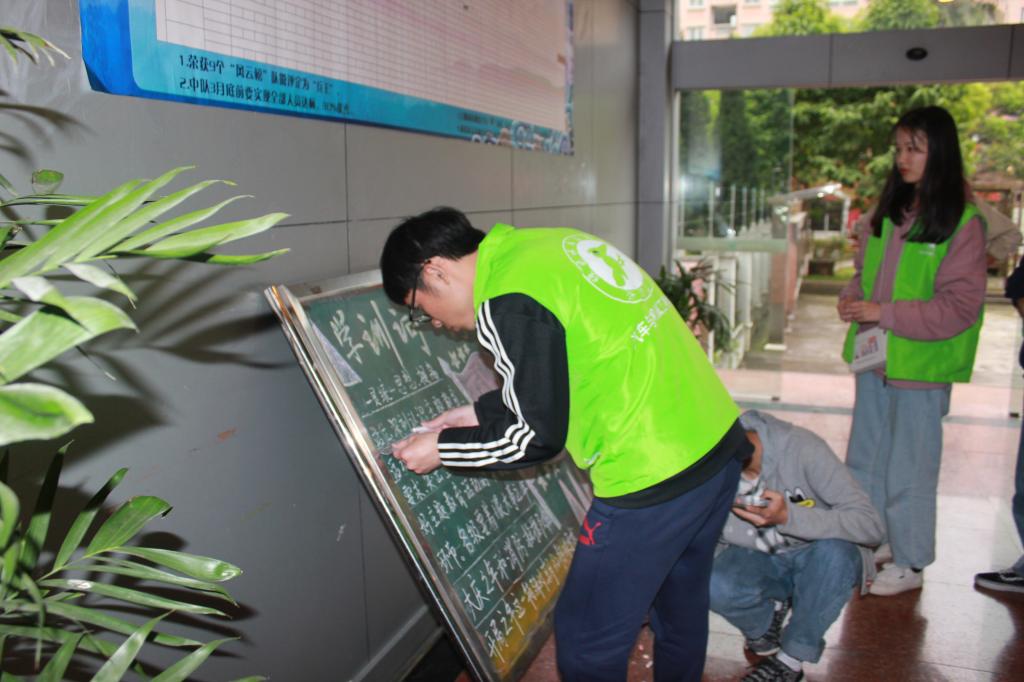 参观完后,入党积极分子为消防队出了一期以“学训词、铸忠诚、创新业、立新功”为主题的黑板报,各同学积极配合,尽心尽力完成排版、绘画、写字,黑板报成果也得到了教官的好评。通过本次活动,入党积极分子了解到了奔赴在危难面前却保护人民的消防官员的生活与奉献,同时学会不怕辛苦、志愿服务的精神。
