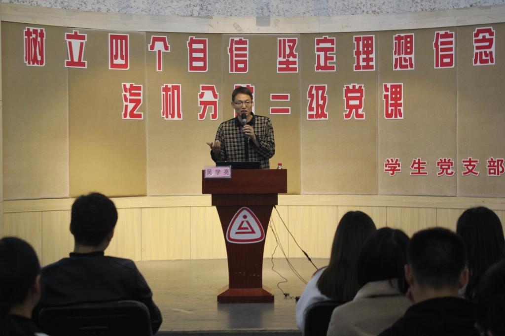 4月16日,汽机分院员工党支部在多功能厅举行“树立四个自信·坚定理想信念”为主题的二级党课,分院2017级和18级入党积极分子参加了此次学习会。本次党课由分院吴学亮老师主讲,吴老师结合作为一名70后的成长变迁,讲述了中国从落后到崛起,从贫困到富有,从弱小到强大。