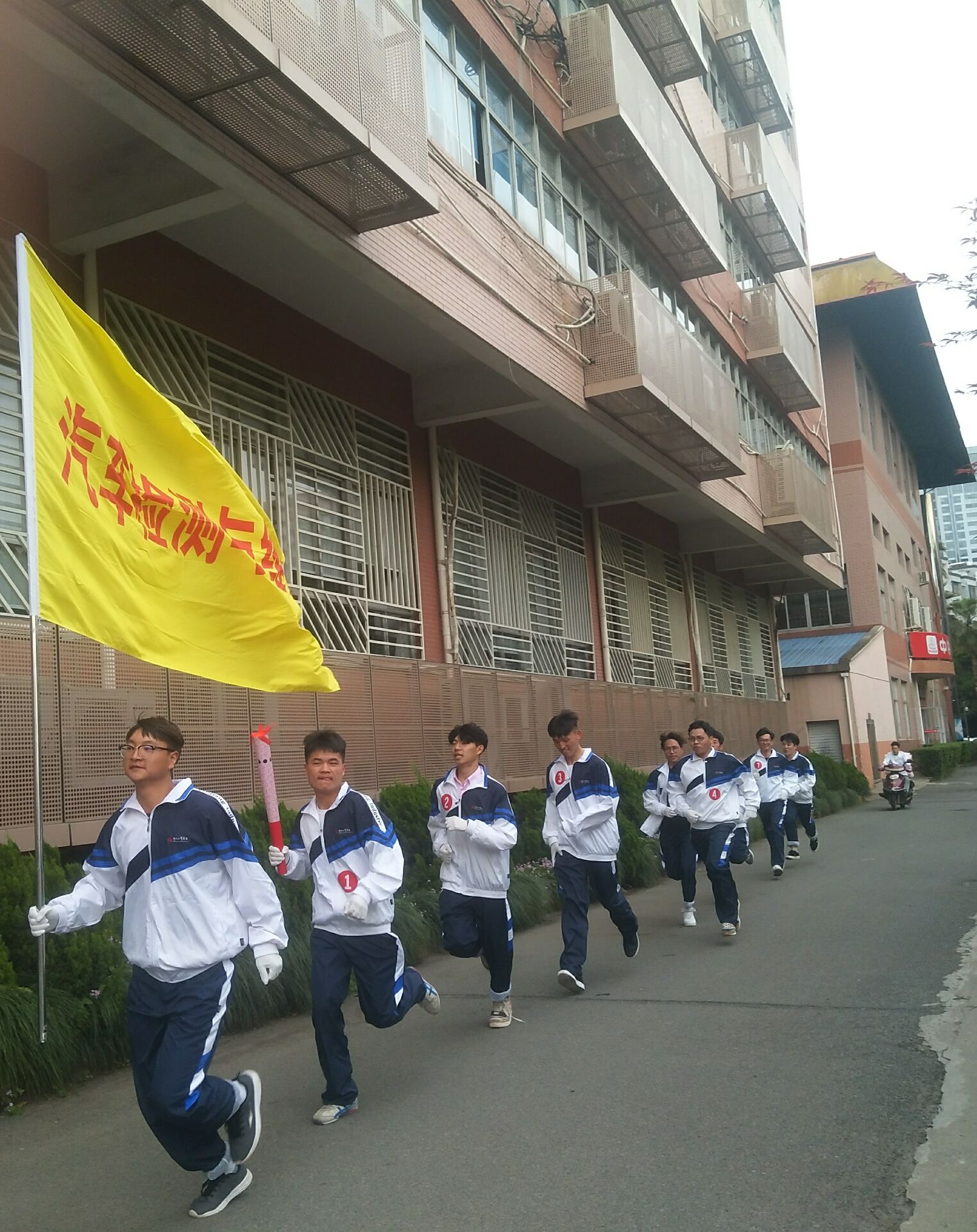 活动分为火炬启动仪式、火炬接力以及表彰先进青年三大项。首先是在操场举行火炬启动仪式。随着主持人王启旺同学的一声全体立正,汽机分院教师代表与员工们齐唱国歌,拉开了活动序幕。汽机分院员工负责人吴学亮老师致活动开幕词,吴老师提到五四活动的内涵、意义,青年的梦想、责任与使命,希望各员工能传承五四精神,在青春路上勇往奔跑。后续,汽机分院六个专业主任登上操场主席台,由吴老师点绕火炬后,依次传递给六个专业主任。操场上,站立每个专业的9名员工,共计54名员工,其中6名专业旗帜护旗手,48名火炬手。六个专业主任拿着象征五四精神的火炬来到专业队伍,在吴老师一声火炬接力开始,各专业队伍按照环境、机电、模具、汽修、汽销、数控专业的队伍奔向校园的8个火炬知识闯关接力点,分别是汽机分院办公室、行政楼、六号教学楼、学子广场、F幢寝室、二号餐厅、E立方以及一号教学楼。每支队伍依次通过8个接力点,在完成“爱国、民主、进步、科学”五四精神类知识答题后,交接火炬,由队伍的第二个人跑向下一个点答题并交接。