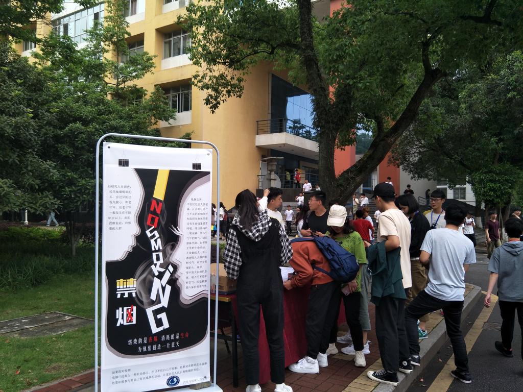 如今老员工吸烟问题已成为众多家长和学校倍加关注的问题,为了员工的身体健康,为了创建美丽校园,2019年5月17日中午,汽机分院团总支员工会文娱部在学院六号楼前开展以《珍爱生命、拒绝吸烟、清新校园》的禁烟活动,路过的工贸学子们积极参与了此次活动。