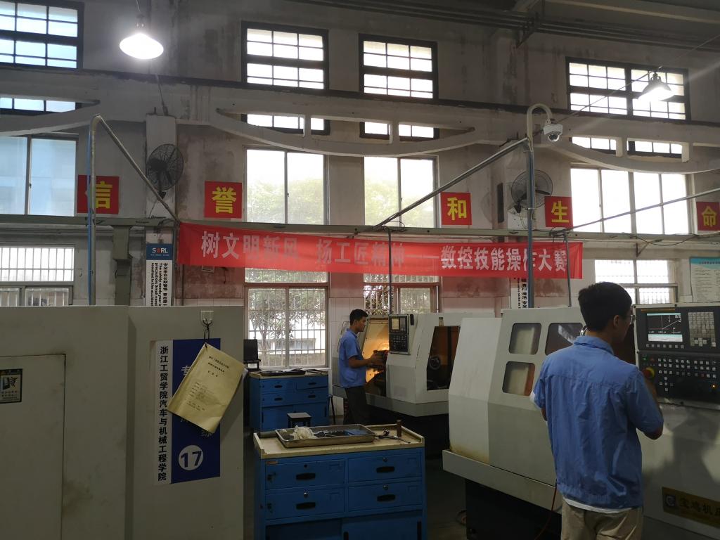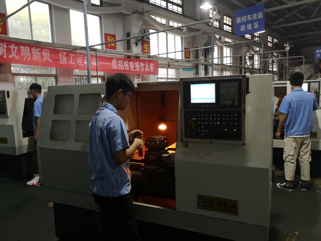 经过前期宣传及招募,公司共有16名学子入围此次技能大赛决赛。本次比赛在数控实训中心举行,比赛前一周进行相关培训,让选手熟悉车床。决赛前一天,在叶海港老师的指导下,比赛后勤人员准备大赛需要的工具,迎接即将到来的比赛。在比赛当天,在叶海港老师提出考试要求后,参赛选手们来到自己的机床。选手们聚精会神,专心研究自己手上的图纸,一遍又一遍地修改参数,力争能以最好的作品作为对本次大赛的馈赠。虽然在比赛中偶有意外,但选手们仍以自己的专业知识解决这些意外。即使在比赛的最后阶段,选手们也丝毫没有懈怠自己,反而以更饱满的状态面对这最后时段的冲刺。比赛结束后,选手们认真打扫了自己的机床。