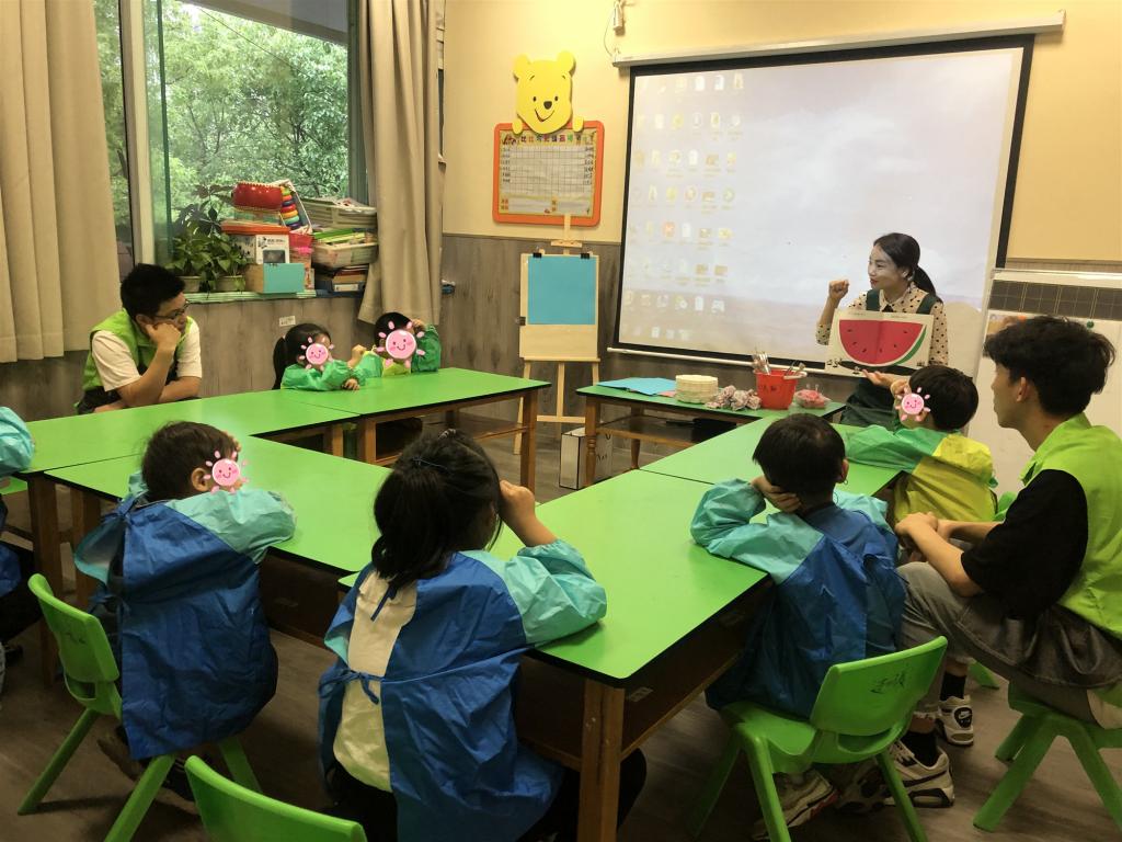 2019年5月25日,汽机分院绿色啄木鸟志愿队再次来到温州星乐儿童成长中心开展志愿活动,这已经是绿色啄木鸟志愿队本学期第六次走进小蜗牛艺术融合课堂协助孩子们画画了。本次志愿者们协同小朋友们画的是蚂蚁搬西瓜。