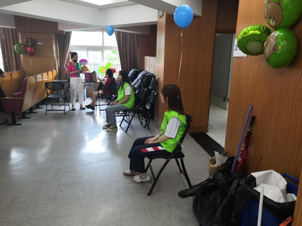 5月31日早上,第一批志愿者冒雨前往活动现场,在工作人员指导下,志愿者们热情地投入到工作中:吹气球、绑彩带、搬桌椅等等。经过志愿者们的近三个小时的精心布置,会场变得焕然一新。下午一点,第二批志愿者们来到温州市鹿城区实验中学,志愿者们统一穿着绿色啄木鸟志愿服,站在会场的各个角落,维持现场的秩序,给参会者提供相应服务。整场活动三个多小时,志愿者们始终坚守自己岗位,虽然辛苦,但看到孩子们灿烂的笑脸以及活动圆满结束,志愿者们感觉这一切的付出也都是值得的。