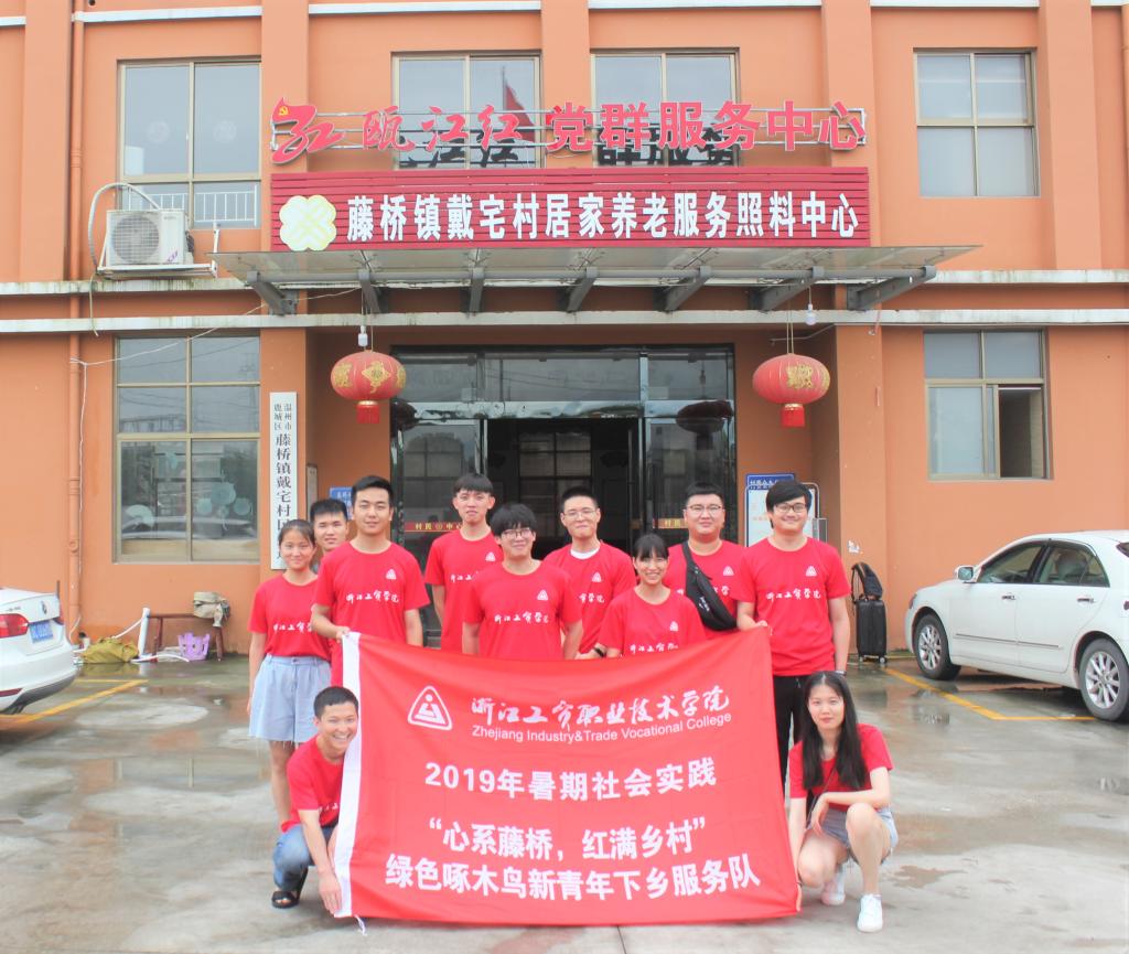 七月的大地,有一种旗帜在拓展;七月的天空,有一种渴望在涌动。七月的炎热,抵挡不住汽机学子服务社会实践、服务他人的热情。为助力温州市“红色筑梦之旅专项行动”这个活动,2019年7月4日,在指导老师黄丹华带领下,汽机学子带着行李,乘坐校车来到了温州市藤桥镇戴宅村,开展为期10天的“情系藤桥,红满乡村”为主题的绿色啄木鸟暑期社会实践。