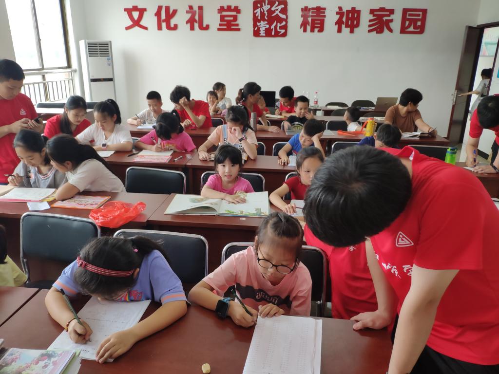 7月5日早晨,伴随着戴宅村第一声鸡鸣,队员们早早起来准备活动:部分队员出去购买一天的食材,体验生活;其他队员准备今天的活动。时代在发展,科技在进步,文化在流失,传统在消逝。为了传承以及发扬传统文化,7月5日暑期社会实践服务队的主题是传统文化。根据主题内容,早上,服务队开展了科普传统知识讲座,讲述了传统节日、传统艺术、传统用具等相关内容。俗话说得好:实践出真知。为了让小朋友更深刻记住部分传统文化,服务队普及极具中国文化意蕴的脸谱,通过讲解脸谱的造型和颜色、图案,告诉小朋友各脸谱人物的性格特征和道德特征。而后,每个小朋友拿到一副空白脸谱,让小朋友用毛笔绘画出独具特色的脸谱。在课堂上,小朋友认真听讲,积极投入讨论,细心完成了脸谱制作。下午,为响应戴宅村党支部“关注童心童情,传播国学知识”传统文化活动。服务队在戴宅村文化礼堂开展国学课堂--《五言》课堂,带领小朋友领略了五言的历史、结构、韵律,随后举行了五言古诗词竞赛,以小组模式进行轮流答题。小朋友们斗志高昂,热情参与本次活动,最终每个小朋友都分到了精美丰厚的小礼品。在宣传传统文化知识外,上下午志愿者们分别抽出一个小时辅导小朋友的暑假作业,帮助小朋友们学习英语单词、讲解数学思路、拼写汉字等,解决小朋友们的疑难问题。