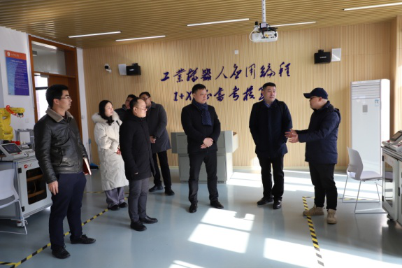 北京赛育达总经理王志强一行在3044永利集团经理郑道友、副经理李晓星等陪同下,先后参观了工业机器人实训基地、产教融合智能制造生产线、智慧教室、多功能会议室等,对公司新校区基地、设施的建设给予了高度评价。