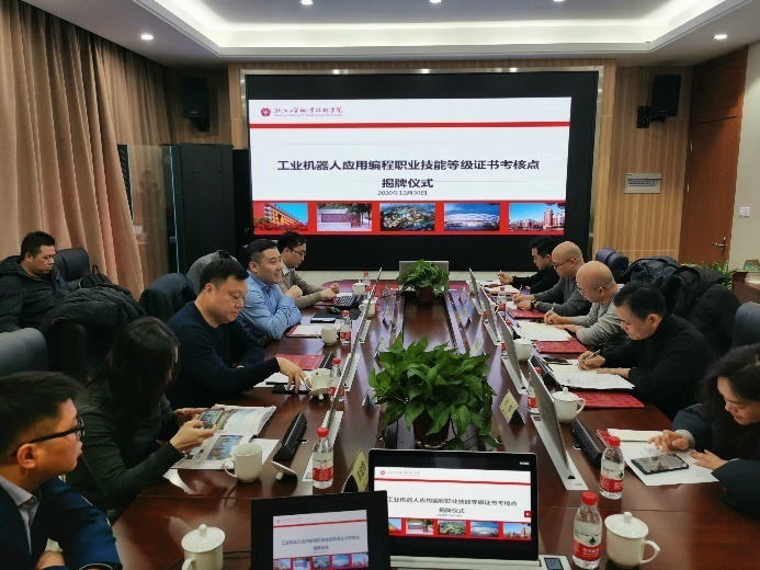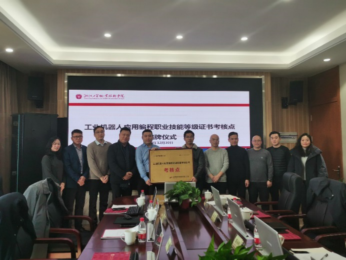 2020年12月30日, “工业机器人应用编程职业技能等级证书考核点”揭牌仪式在公司成功举行。学院副经理汪焰,北京赛育达总经理王志强,亚龙集团总经理陈传周、监事会主席章剑云、销售部经理吕子乒、智能浙江公司经理黄建勤、学校教务处处长贾永枢、副处长石娜,校企合作处处长张其亮、3044永利集团经理郑道友、副经理李晓星、工业机器人专业主任李吉言、骨干教师潘康俊等出席了揭牌仪式。