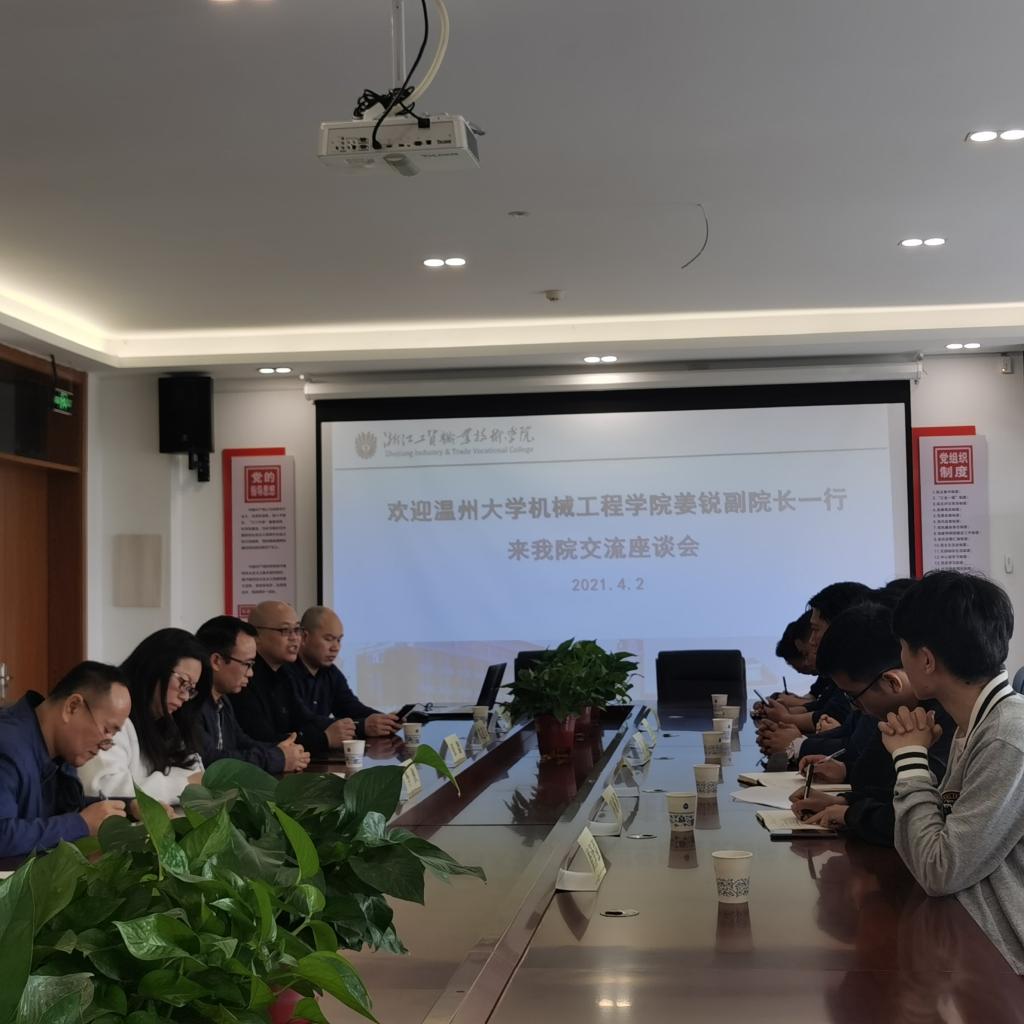 4月2日上午,温州大学机电工程学院副经理姜锐一行来到公司瓯江口校区参观交流,光电分院经理郑道友、实训中心主任姚锡钦等负责陪同接待并进行座谈交流。