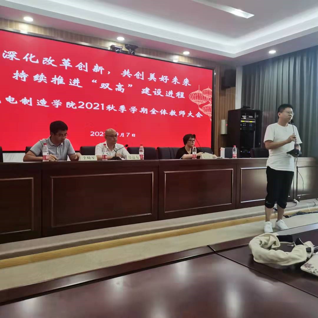 9月7日下午,光电学院在行政楼104会议报告厅隆重举行2021秋季学期全体教师大会。全体光电学院教职工参与,会议由秦佳副书记主持。