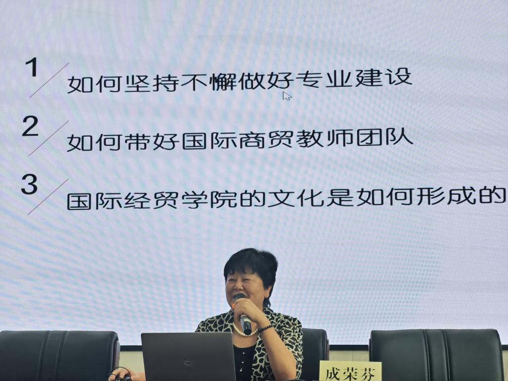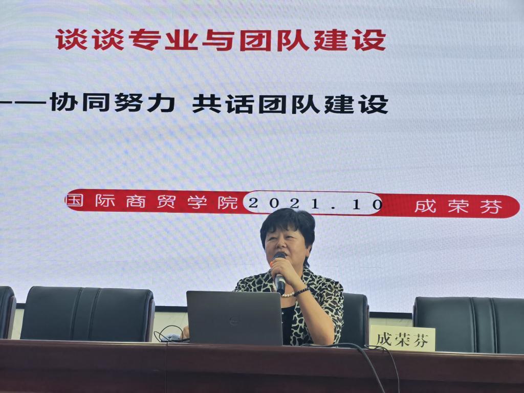 成荣芬经理以“协同努力打造优秀专业与创新团队”为主题,从如何坚持不懈做好专业建设、如何带好国际商贸教师团队和如何营造国际商贸学院和谐文化三个方面展开讲座。